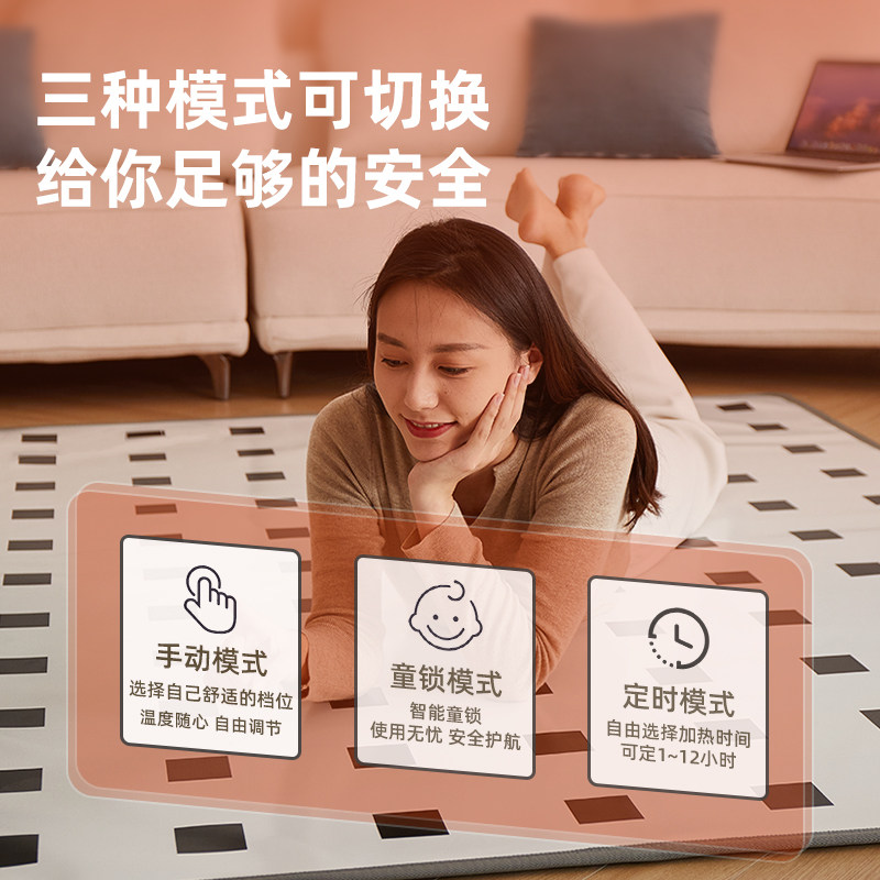 天猫环鼎地暖垫加热地垫2026新款石墨烯黑白格子发热地毯客厅电热家用