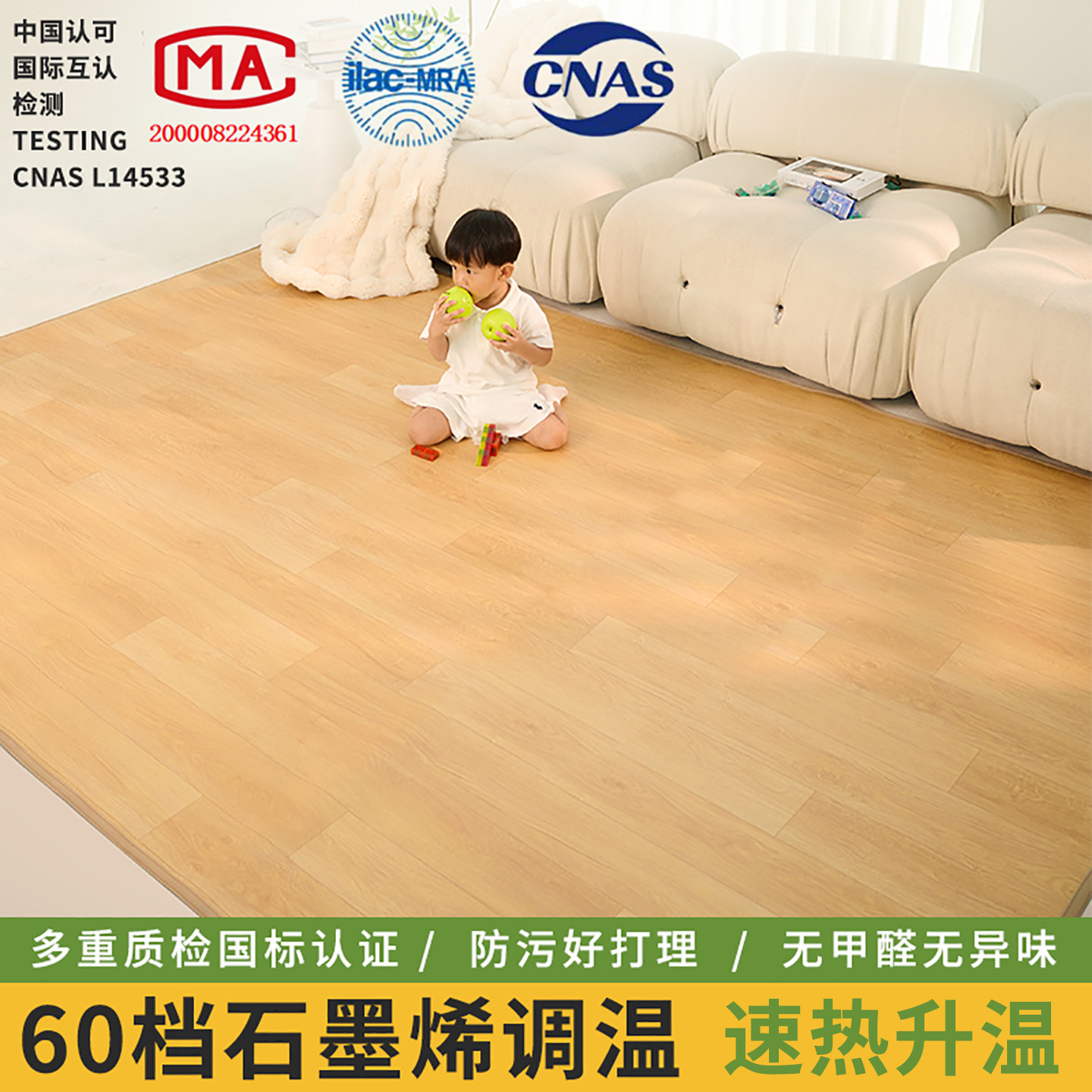 天猫电热地毯客厅石墨烯碳晶移动地暖垫取暖器防水发热地垫极简免打理