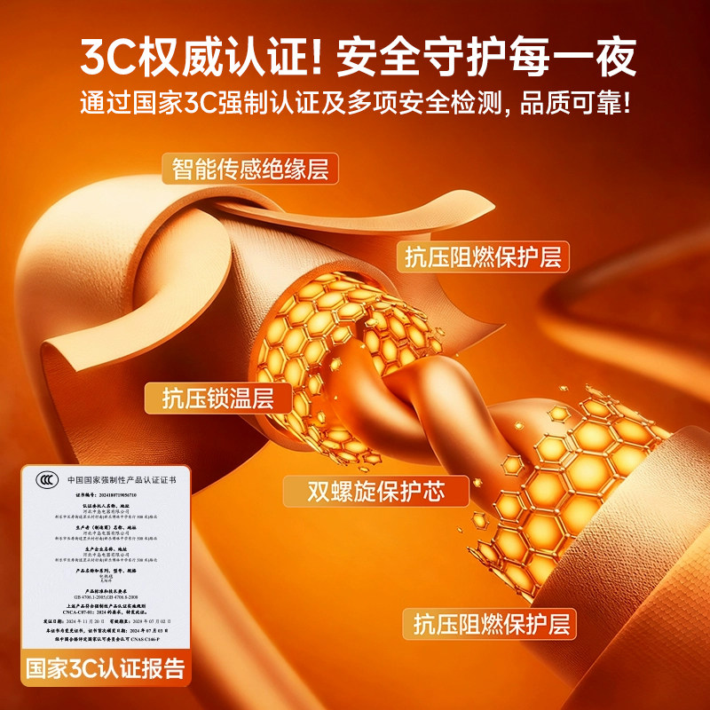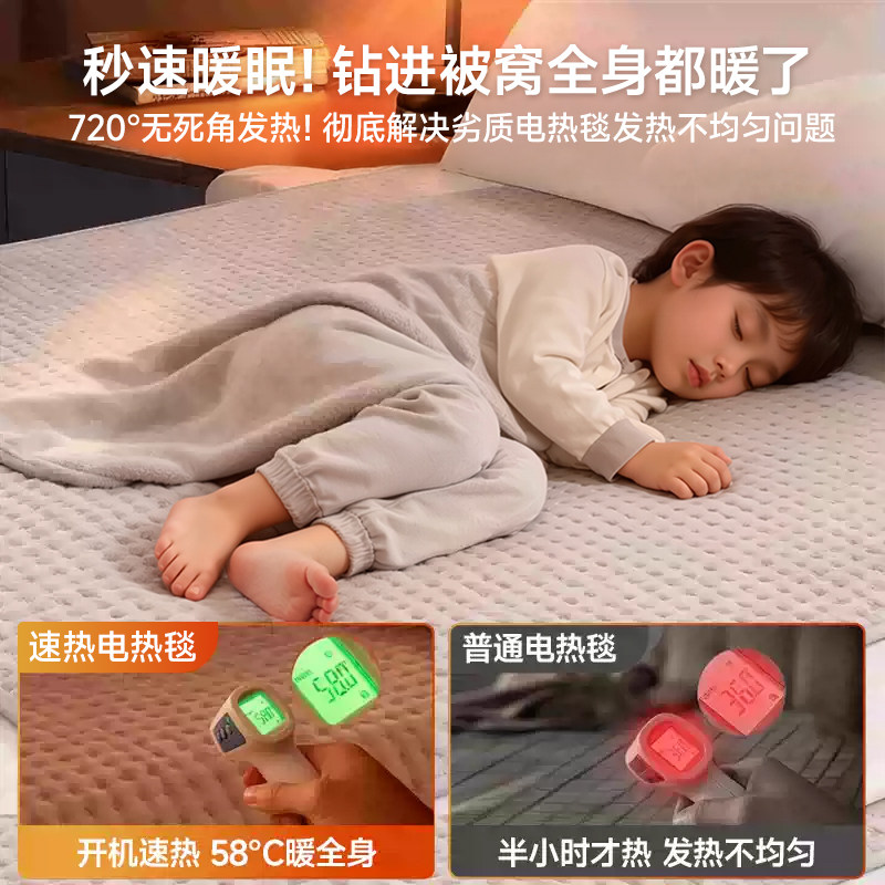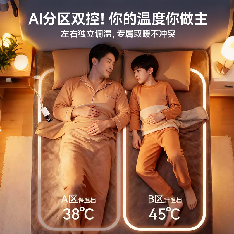 2025年新款电热毯,正品保障,官方旗舰店直售,品质值得信赖。专为单人及双人设计,采用优质亲肤面料,柔软舒适,安全耐用。创新双区双控技术,双人款可独立调节左右两侧温度,满足不同体感需求。配备智能调温开关,多档温控精准调节,恒温锁热,避免过热隐患。内置过热保护与自动断电功能,使用更安心。低功率节能设计,整夜温暖不干燥。折叠便携,收纳方便,适合居家、办公、宿舍等多种场景。2025新款电热毯,以科技守护温暖,让每一个寒冷冬夜都安心入眠。