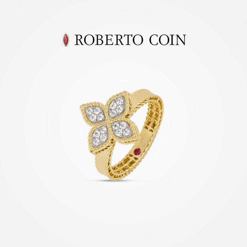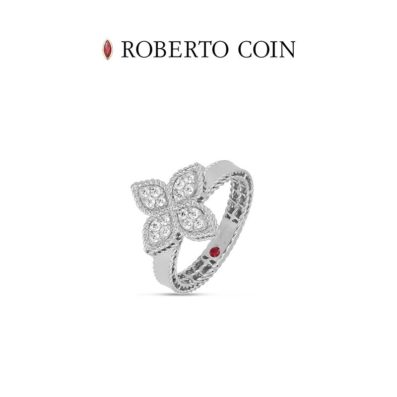 【节日礼物】ROBERTOCOIN/珂瑛PRINCESSFLOWER系列女士钻石戒指,以优雅绽放的公主花为设计灵感,将浪漫与奢华完美融合。精选高品质钻石镶嵌于18K金戒托,花瓣造型精致立体,闪耀动人光芒,象征爱与承诺的永恒绽放。每一处细节均经匠心雕琢,佩戴舒适,彰显女性高贵气质。无论是情人节、生日或纪念日,这款戒指都是表达深情的不二之选。ROBERTOCOIN以其意大利精湛工艺与独特美学,为每一位女士打造专属的璀璨时刻。赠予挚爱,让爱在指尖绽放,成就 unforgettable 的节日惊喜。