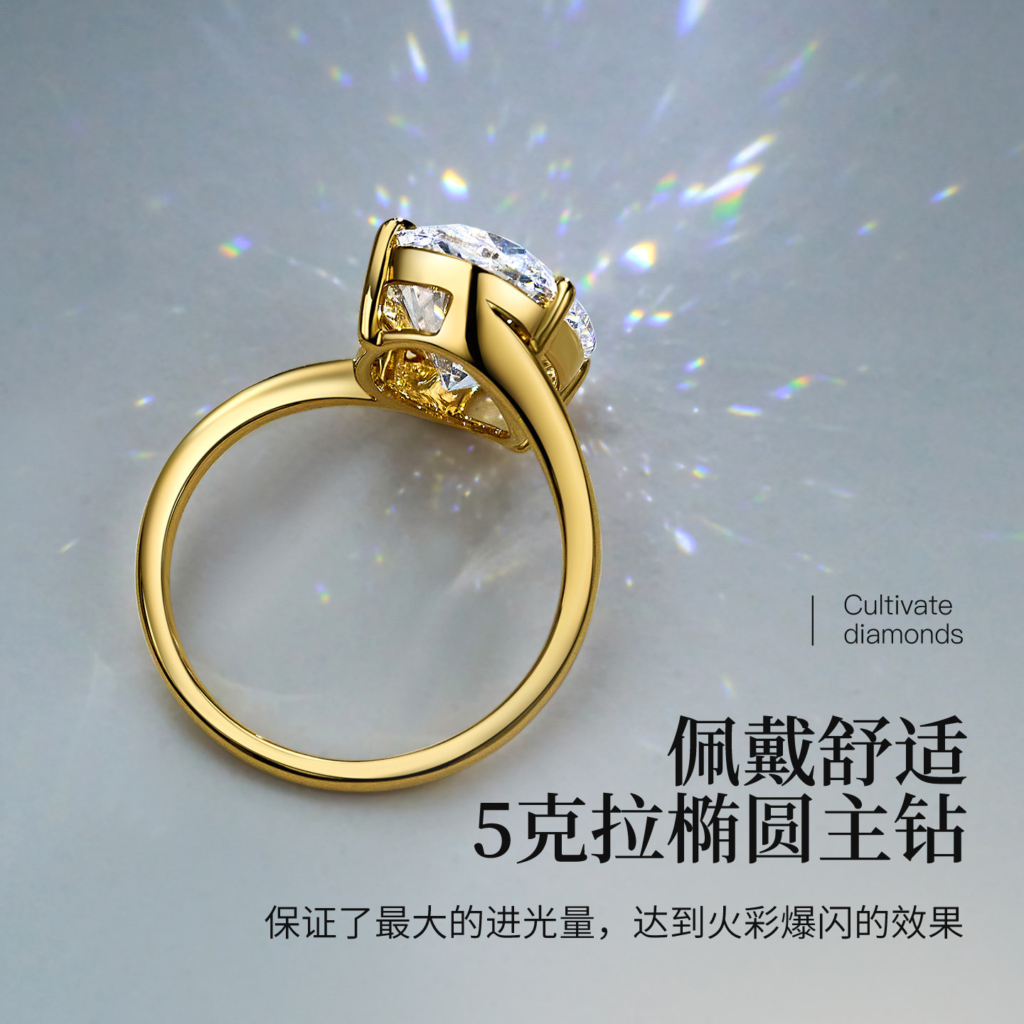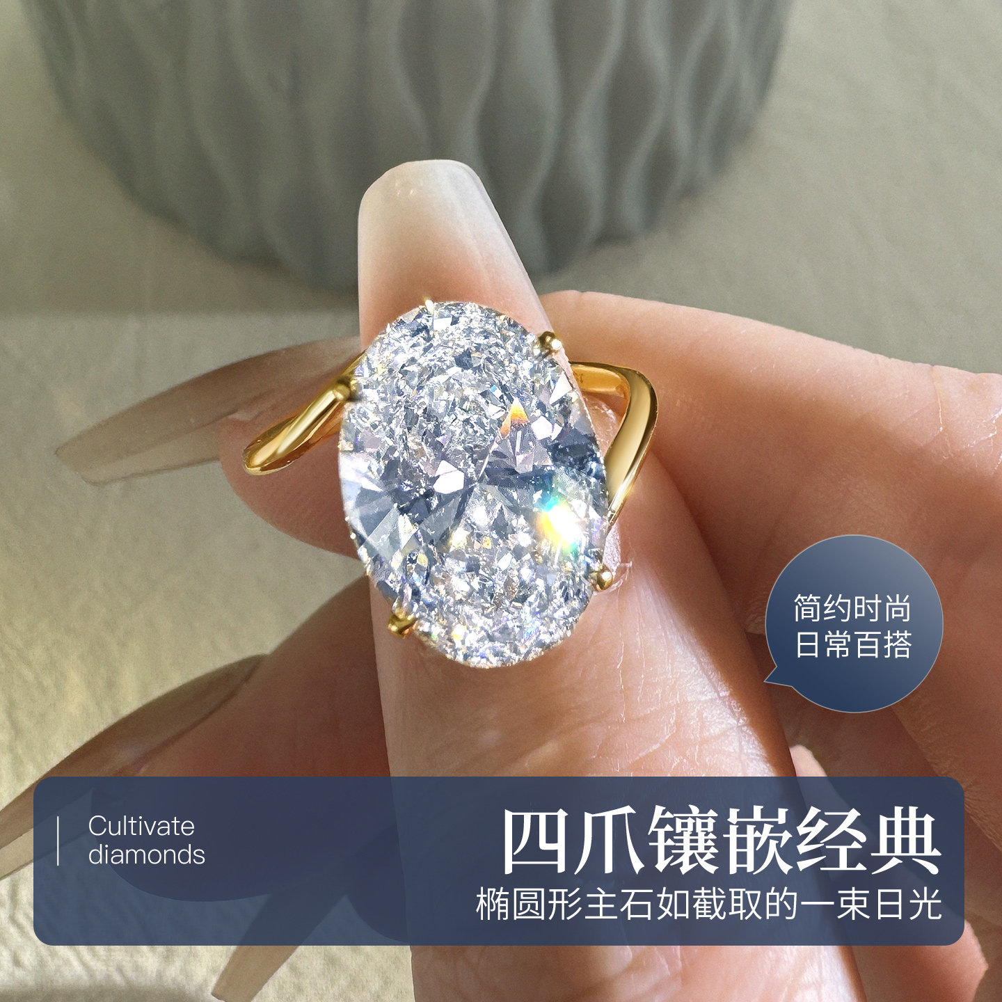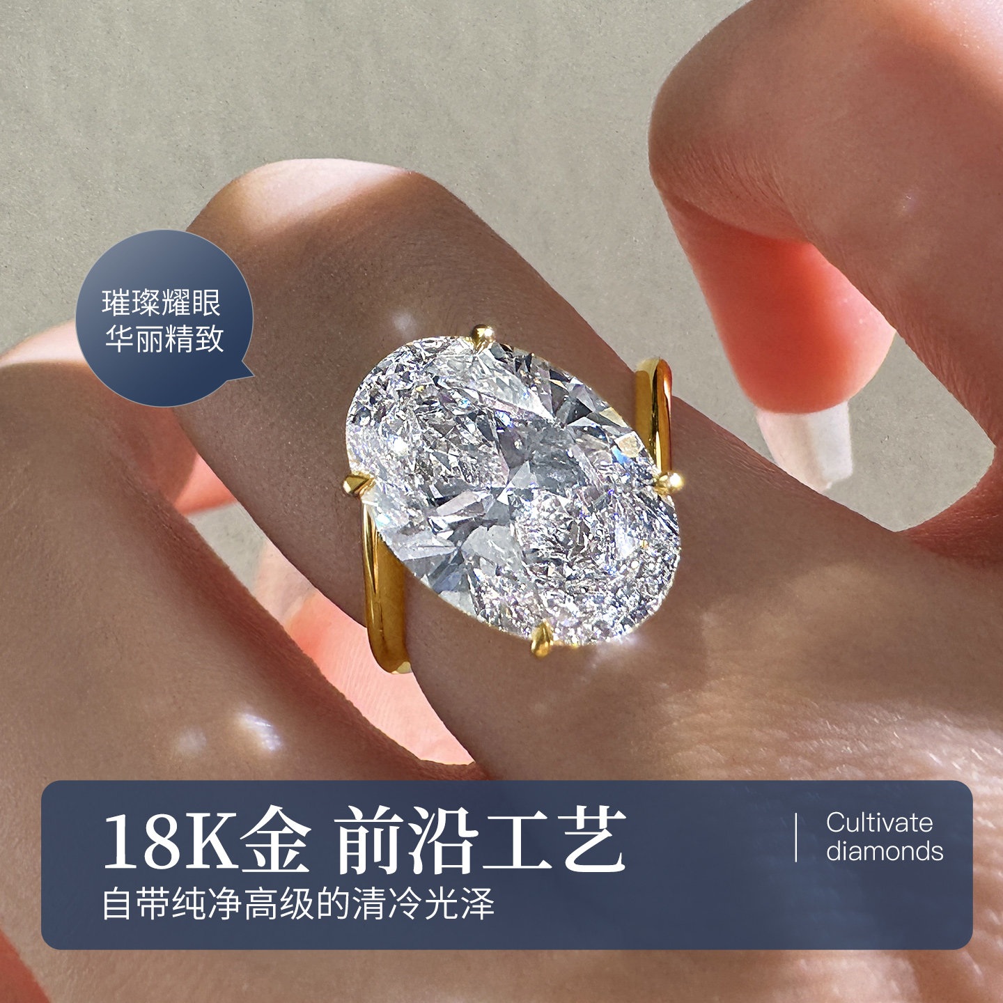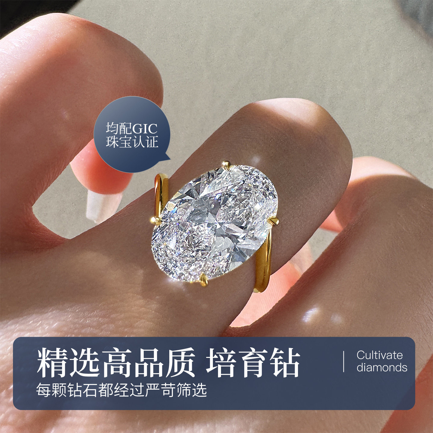 淘宝椭圆扭臂款钻戒戒指18k金钻石手饰高品质培育钻石大克拉豪华钻戒