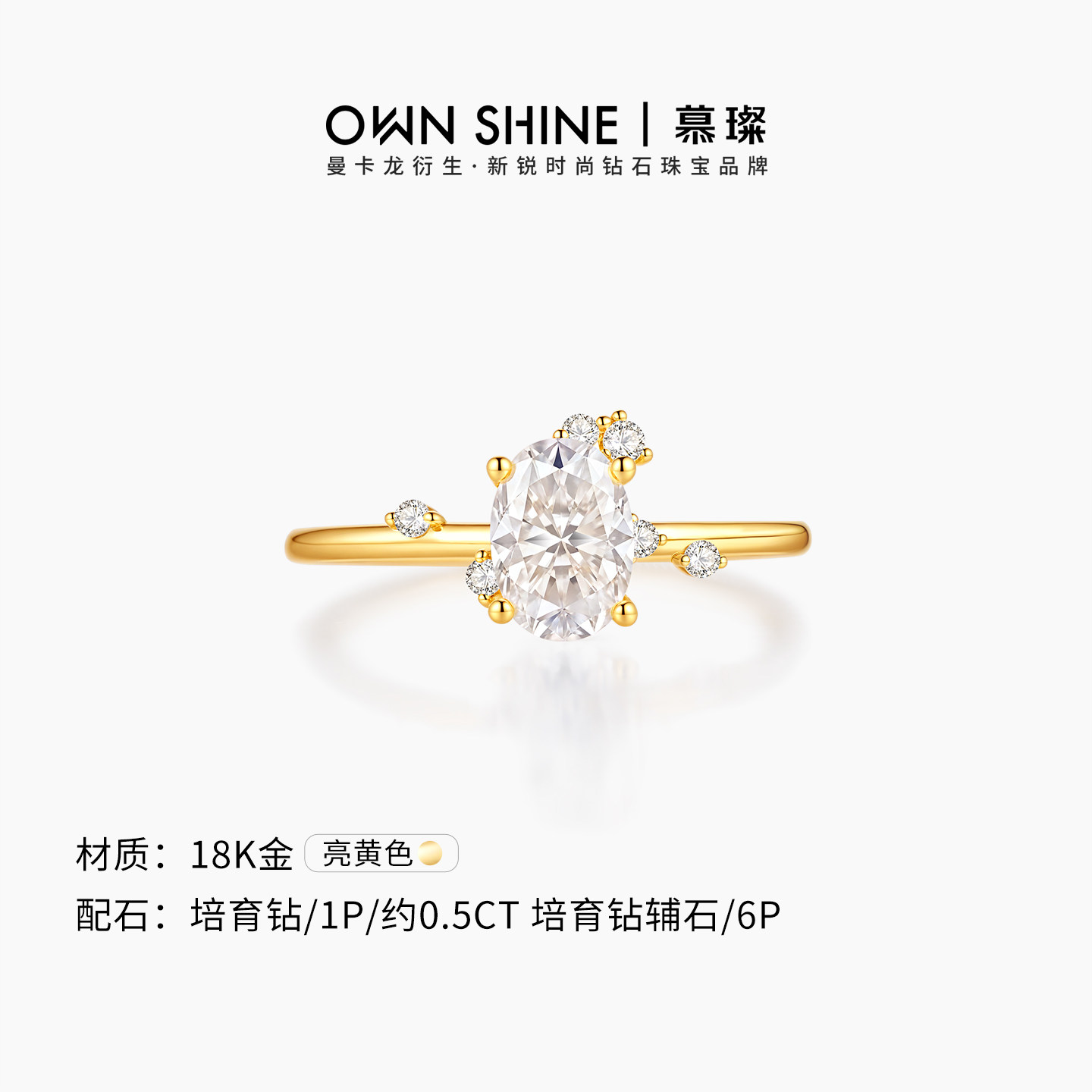 天猫【情人节】曼卡龙/慕璨碎念星河18k金戒指50分蛋面钻石女友礼物