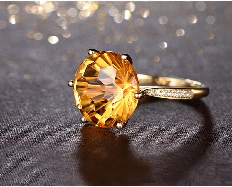 天猫米莱珠宝 8.1克拉天然黄水晶戒指女18K金钻石镶嵌钻戒 彩宝石定制