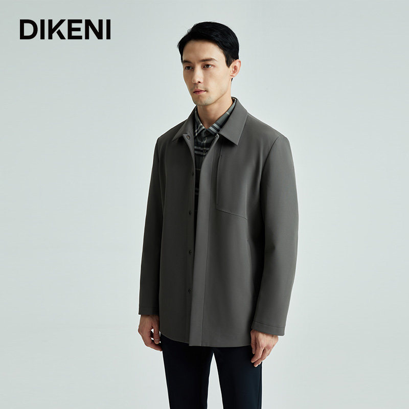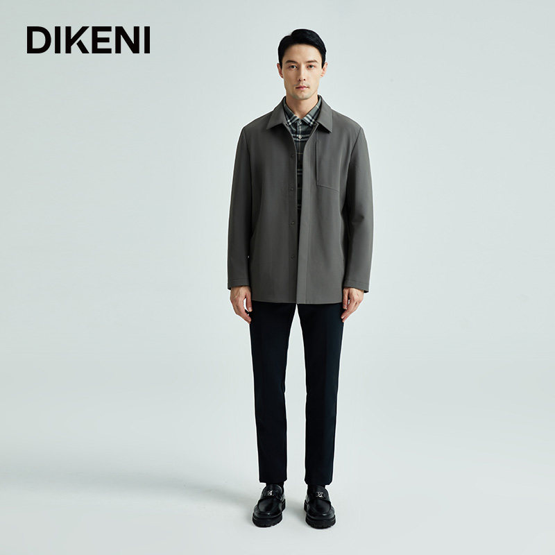 迪柯尼2023秋季新品男士锦氨易打理干部款商务会议行政夹克风衣,融合经典剪裁与现代科技面料,专为都市精英打造。采用高品质锦氨混纺材质,兼具挺括质感与舒适垂感,抗皱免烫,轻松应对繁忙日程。利落翻领设计搭配简约门襟,彰显干练气质,适合商务会议、行政办公及正式场合。立体剪裁贴合身形,细节处体现匠心工艺,袖口与下摆精致走线,提升整体品质感。多口袋实用布局,兼顾美观与功能性。无论是搭配正装还是休闲衬衫,皆能展现从容自信的职场风范,是精英男士秋季衣橱的必备之选。