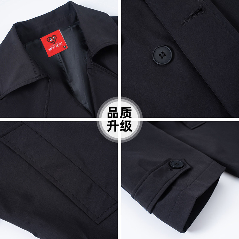 天秋季扣子款风衣男中年纯棉翻领中长款水洗棉宽松大码爷爷春装外套