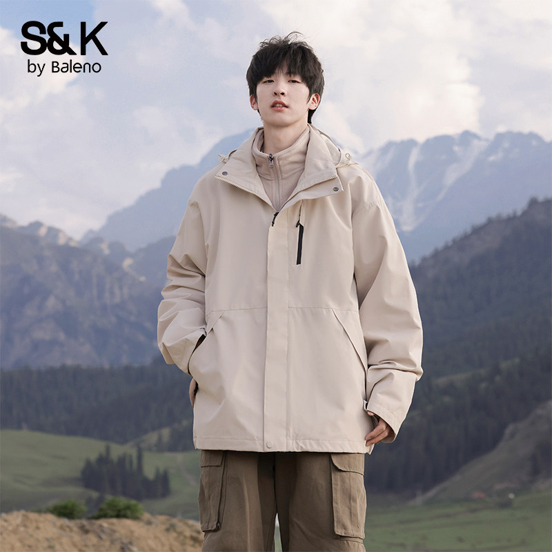 天猫班尼路三合一冲锋夹克男士秋冬季2026新款户外可拆卸登山防风衣E