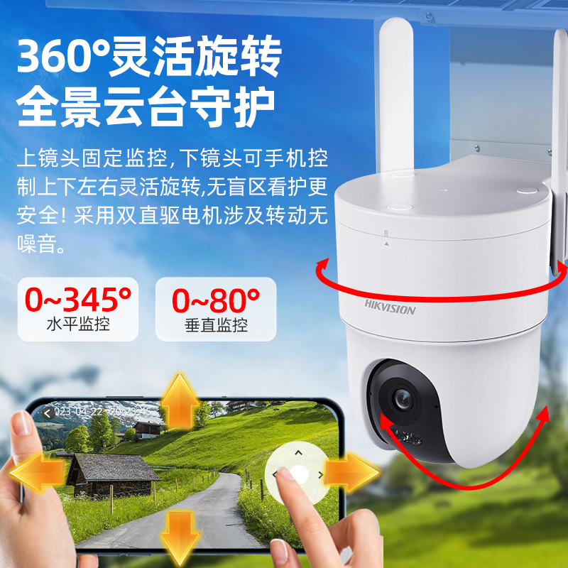 天猫海康威视太阳能4g摄像影头360度高清连手机远程免插电户外监控器