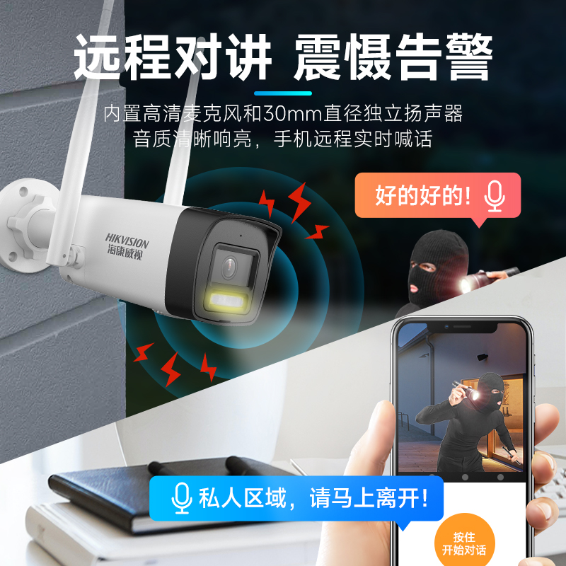 天猫海康威视无线wifi可连手机远程监控器摄影头套装室外夜视摄像头