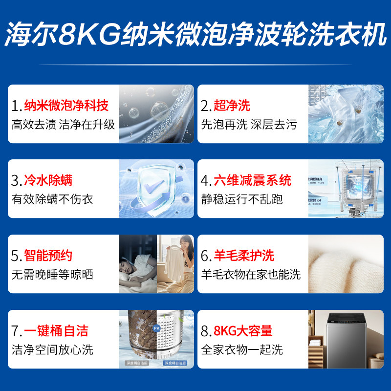 淘宝Haier/海尔 XQB80-M10H0波轮洗衣机家用全自动8/9公斤租房宿舍