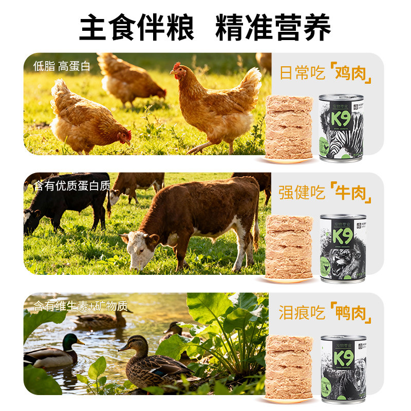 天猫K9狗罐头肉罐头375g 营养主食伴侣 狗零食纯肉罐头幼老年大小型犬
