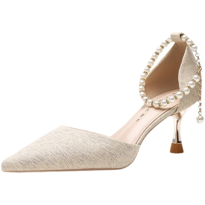 这款防掉跟束鞋带纯色法式珍珠单鞋,专为解决高跟鞋不跟脚问题而设计。采用经典一字扣搭配精致鞋链装饰,简约中凸显优雅气质。鞋面点缀法式珍珠,增添浪漫与高级感,纯色设计百搭各类裙装与裤装。特别加长的扣带与束鞋带结构,有效固定脚后跟,防止掉跟,提升穿着舒适度与稳定性。细高跟设计拉长腿部线条,兼具时尚与实用。无论是通勤、约会还是宴会场合,都能轻松驾驭,展现女性自信魅力。舒适内里与稳固鞋型,让您长时间行走也不易疲惫,是追求品质与美感女性的理想之选。