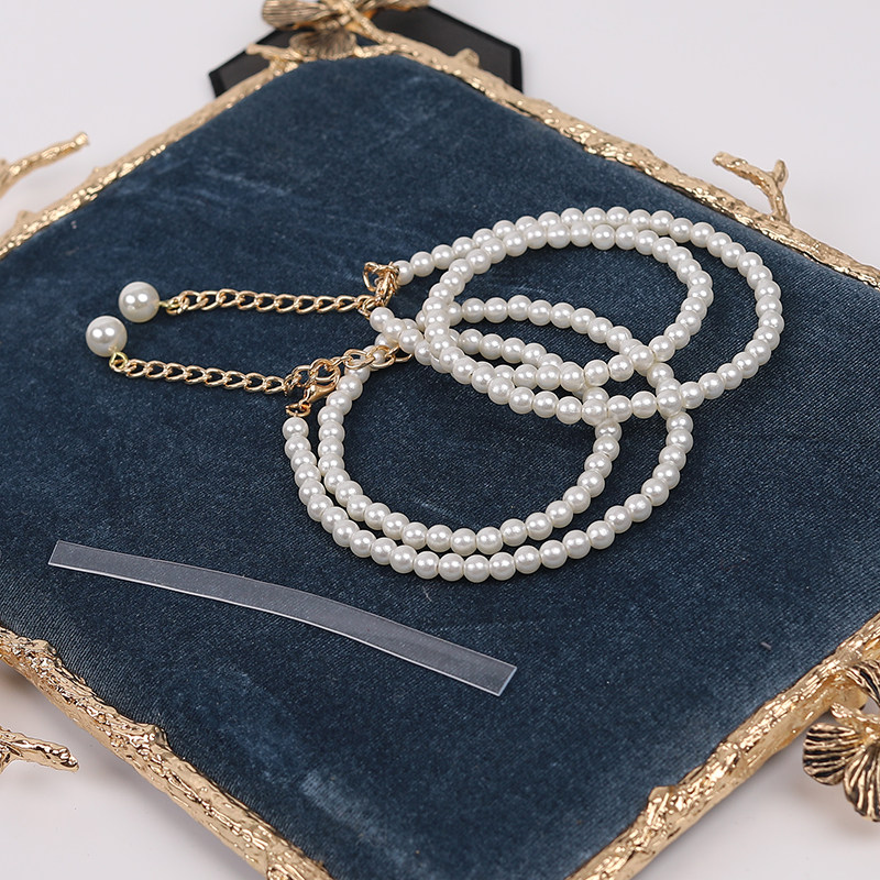 天防掉跟束鞋带纯色法式珍珠单鞋一字扣鞋链高跟鞋扣带不跟脚饰加长