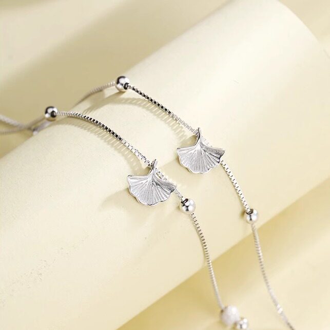 淘宝925纯银脚链 女款轻奢小众韩版百搭高级银杏叶双层脚饰