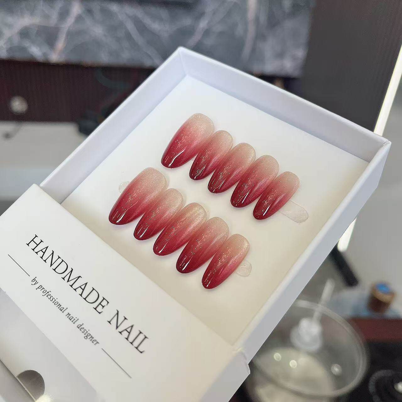 淘纯手工穿戴甲秋冬纯手工高级红色气质法式纯欲红宝石显白美甲穿戴