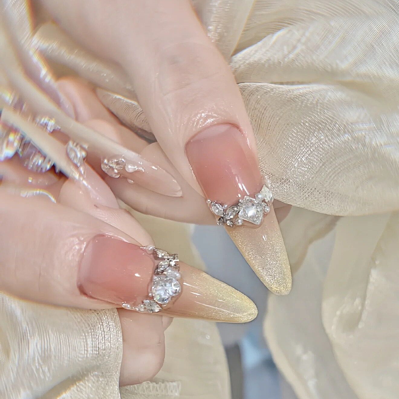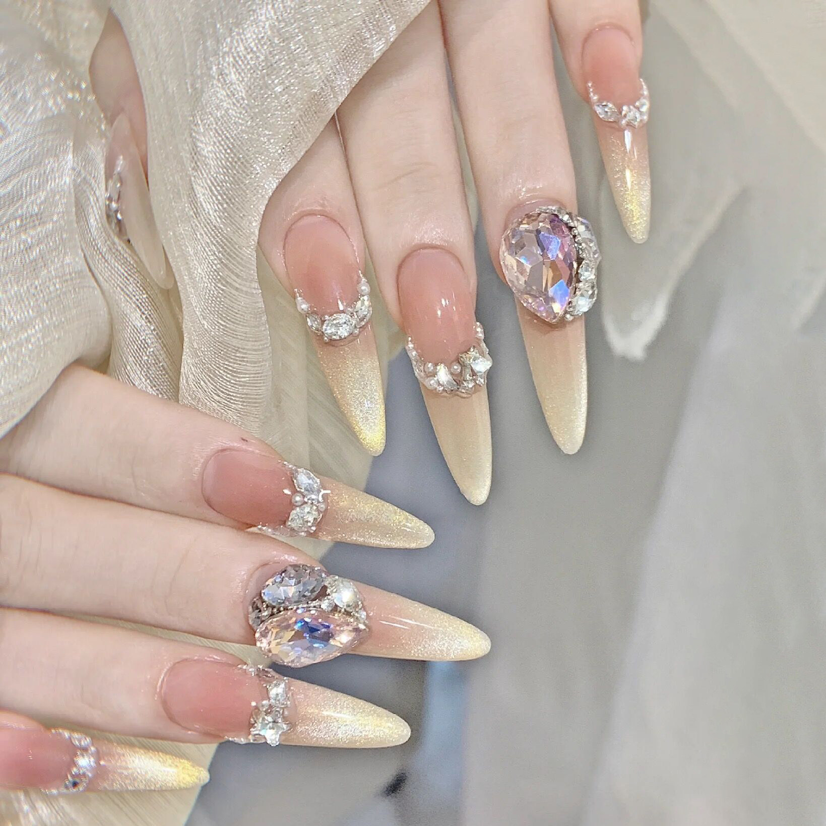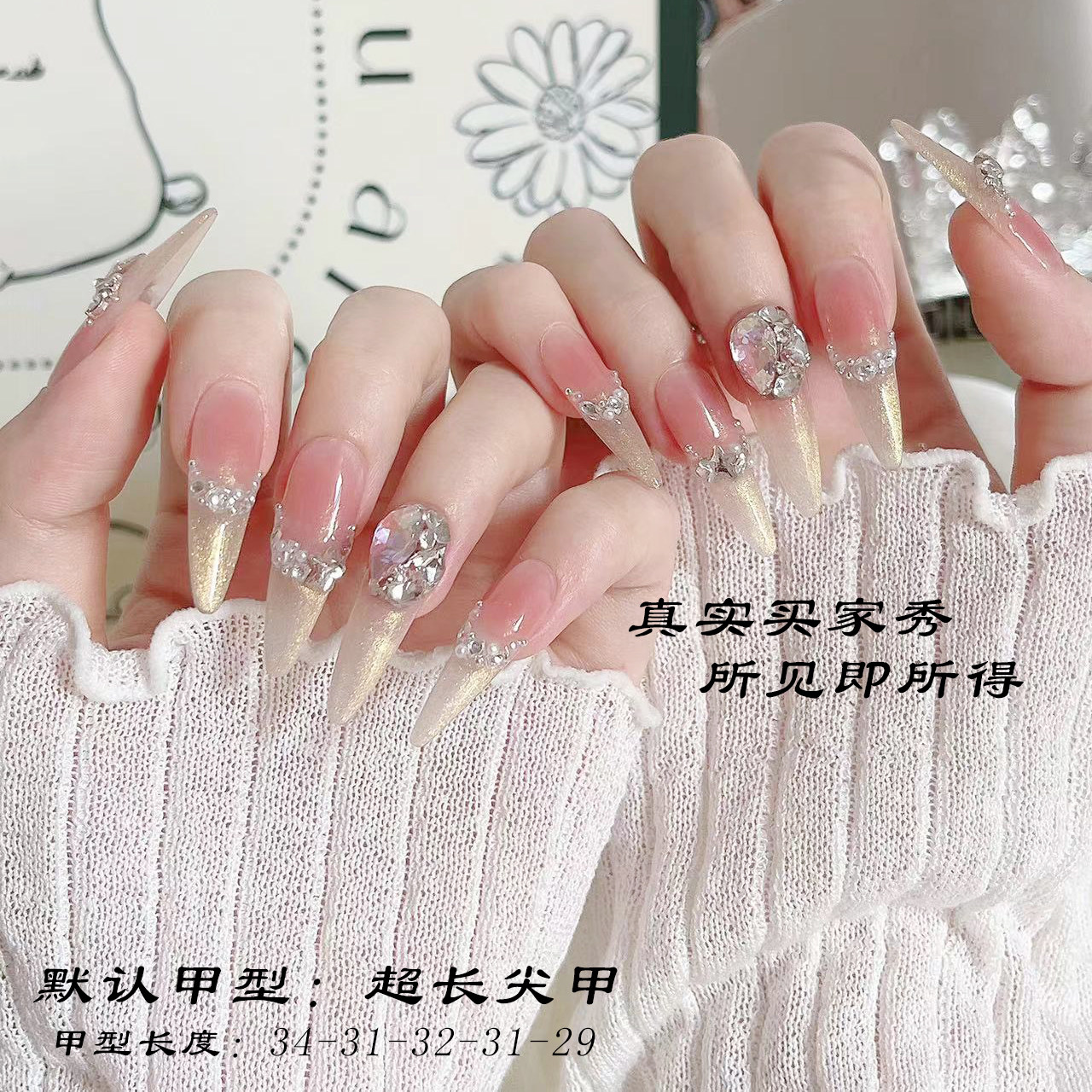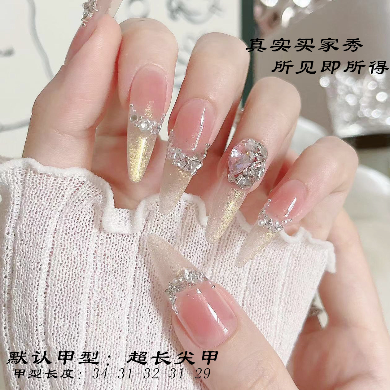 淘人鱼泡泡 纯手工穿戴甲豪镶美甲全锆配饰东洲钻奢华美甲高级款