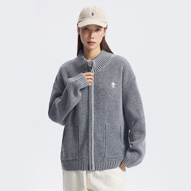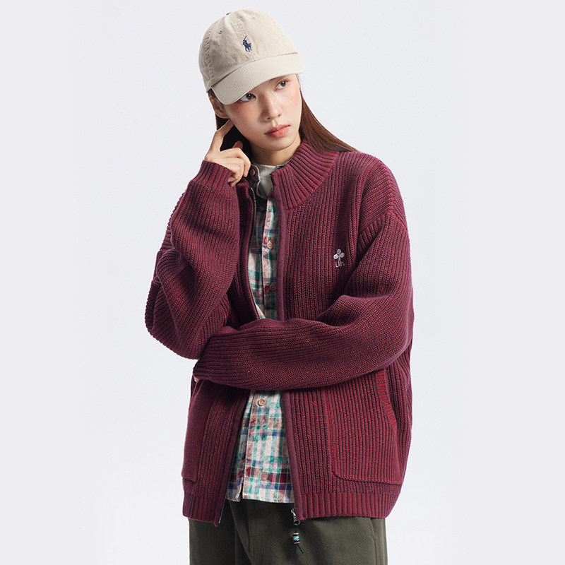 淘宝UHUZZ 24AW基础立领针织毛衣外套拉链针织衫复古休闲上衣开衫女