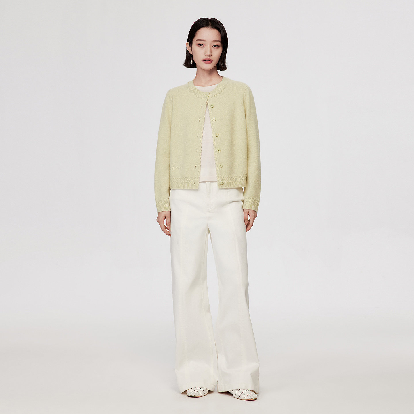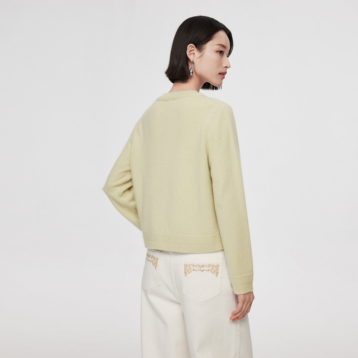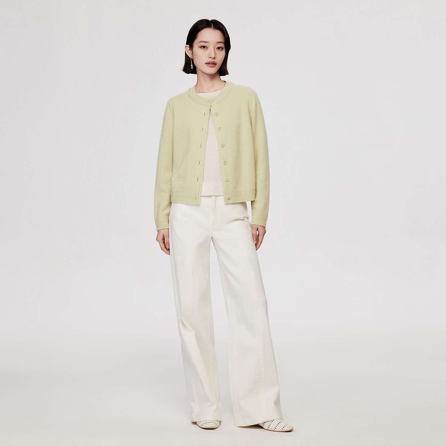 VGRASS 2026春季新款混色夹花羊绒纱绣花logo正肩合身直筒针织开衫,以高品质羊绒纱线打造,融合细腻的混色夹花工艺,呈现自然柔和的层次感。经典正肩剪裁搭配合身直筒版型,修饰身形的同时彰显优雅气质。前幅精致的绣花品牌logo,细节中凸显匠心与品位。开衫设计实用百搭,可单穿亦可外搭,轻松驾驭春日多种场合。无论是通勤还是休闲,皆能展现知性温婉的女性魅力。轻盈保暖的材质与考究的工艺,让这款开衫成为春季衣橱不可或缺的时尚单品。