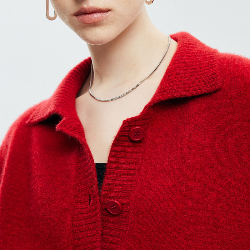 帕罗25秋冬新款女士纯色翻领针织开衫,精选100%优质山羊绒,经强缩工艺处理,质地细腻柔软,保暖性卓越,贴身穿着轻盈舒适。简约翻领设计,修饰颈部线条,彰显优雅气质;经典开衫版型,搭配金属扣饰,穿脱自如,轻松应对多种场合。纯色基调百搭实穿,无论是内搭衬衫还是外披大衣,皆显高级质感。精细针织工艺,结构紧密不易变形,久穿仍保持挺括廓形。这款羊绒开衫将奢华材质与实用设计完美融合,是秋冬衣橱不可或缺的优雅单品,尽显女性知性魅力与精致品味。