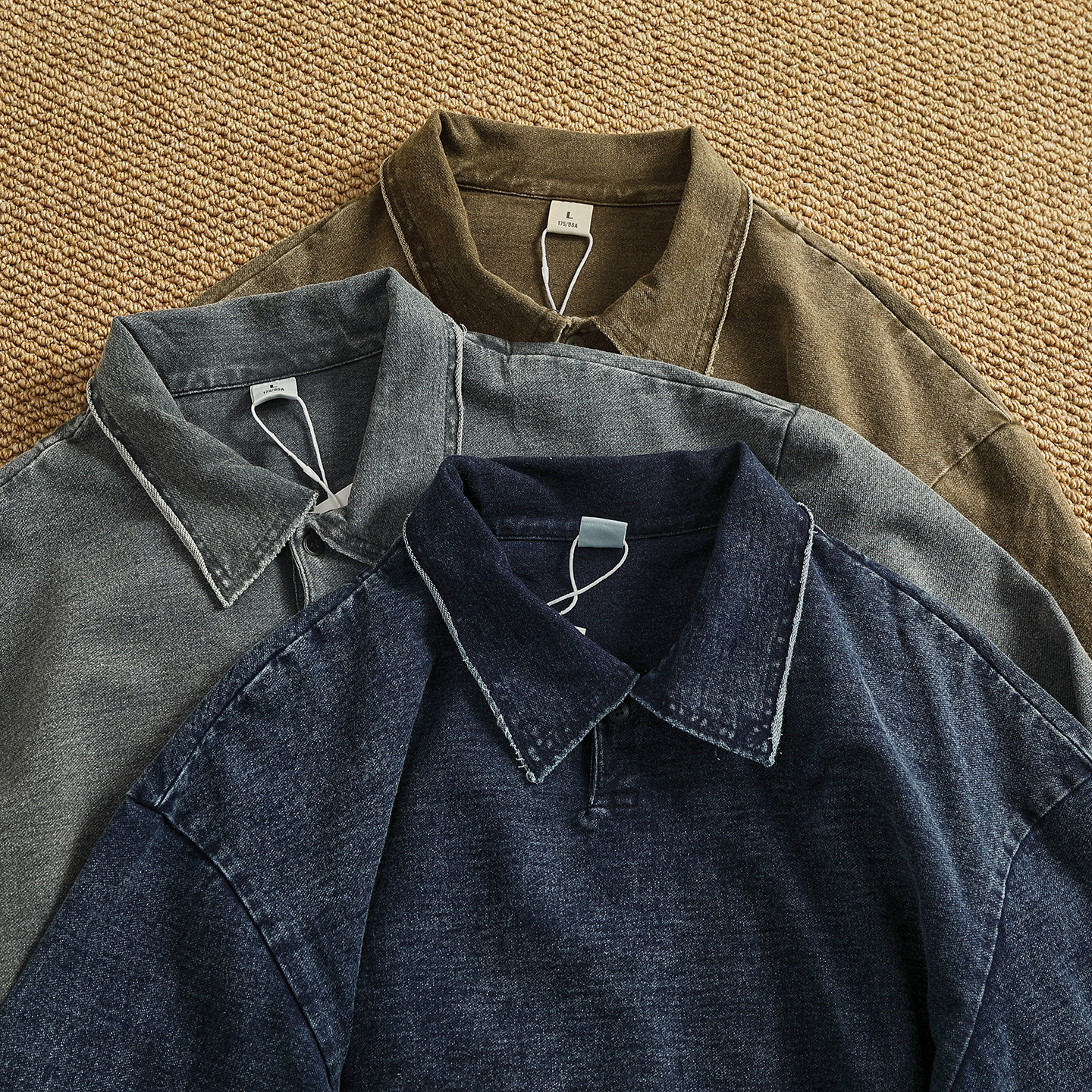 这款重工水洗复古做旧针织牛仔POLO衫,融合经典与潮流,专为追求个性与舒适的男士打造。采用高品质针织牛仔面料,经多重水洗工艺处理,呈现自然做旧质感,复古韵味十足。宽松版型设计,穿着自在无束缚,翻领长袖搭配精致车线,兼具POLO的利落与卫衣的休闲感。细节处融入磨白、猫须等复古元素,彰显独特街头风格。无论是日常出街还是休闲聚会,都能轻松驾驭,展现不羁型格。时尚与实穿兼具,是潮男衣橱不可或缺的百搭单品。