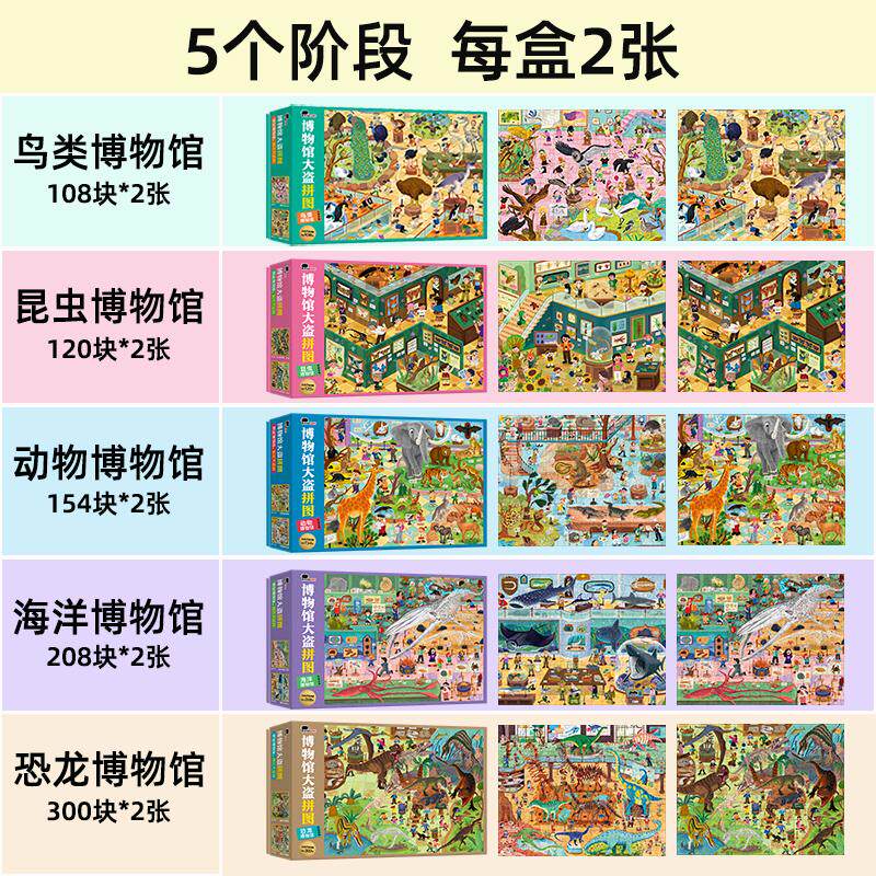 淘宝博物馆拼图6岁以上儿童100片益智5鸟类动物恐龙科普平图男孩8玩具