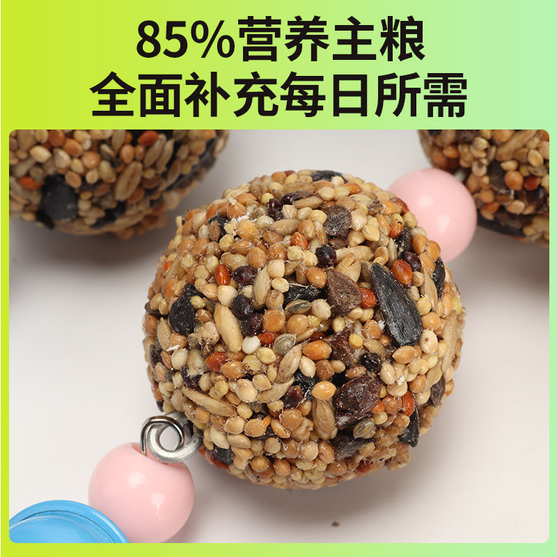 虎皮鹦鹉粮食球磨牙神器是一款专为小型鹦鹉设计的健康零食与玩具二合一产品。内含天然红土、保健砂及谷物成分,既能补充矿物质和微量元素,又帮助清洁肠胃、促进消化。其独特球形设计便于鹦鹉抓握啃咬,有效磨喙、防止喙部过长,同时满足其天性中的啃咬需求,减少啄羽等异常行为。材质安全无毒,硬度适中,兼具磨牙、娱乐与保健功能。适用于虎皮鹦鹉、玄凤鹦鹉等小型鸟类,是日常饲养中不可或缺的综合性鸟类用品,既可作为零食奖励,也能长期放置笼中供其自由啃玩,提升宠物鸟的生活质量与身心健康。