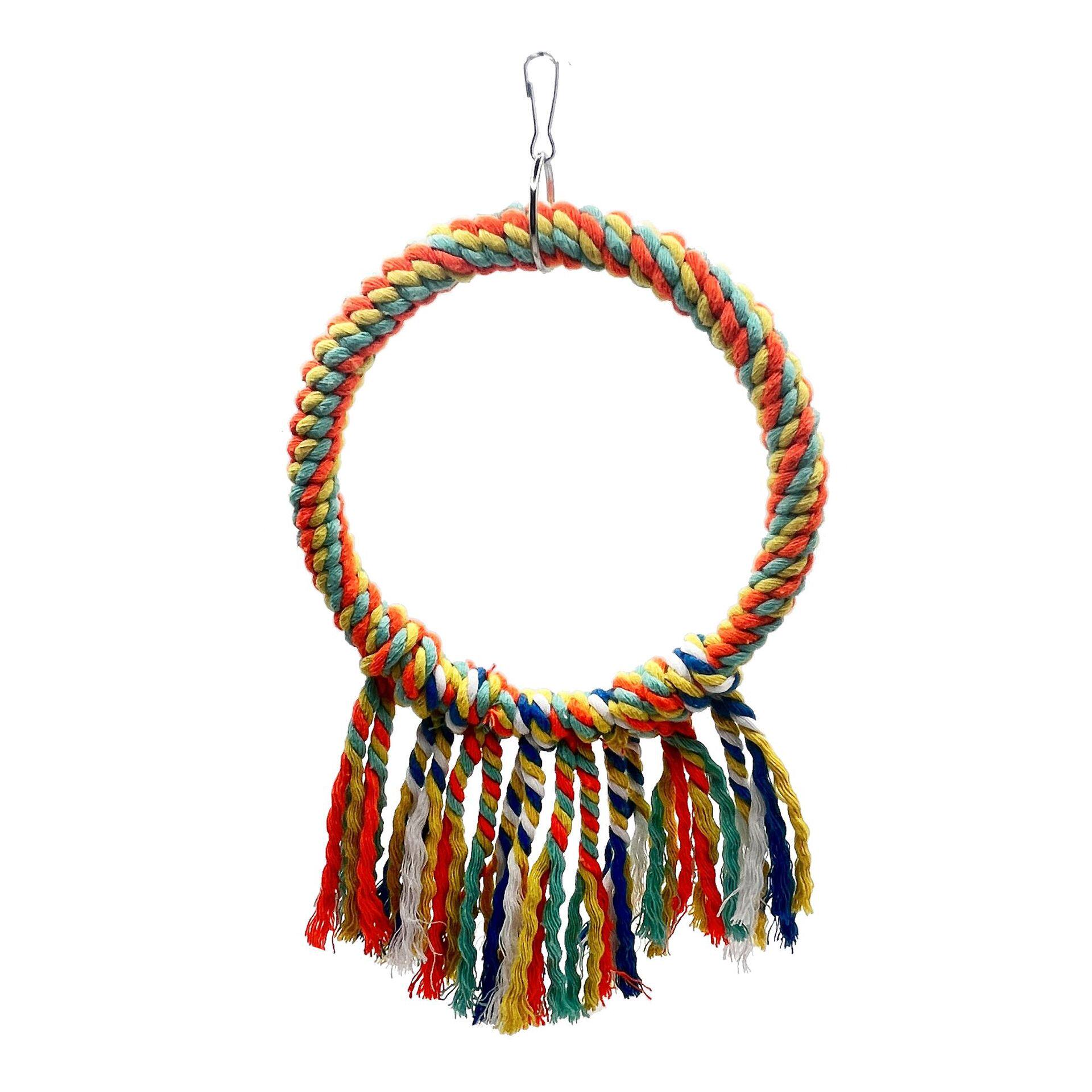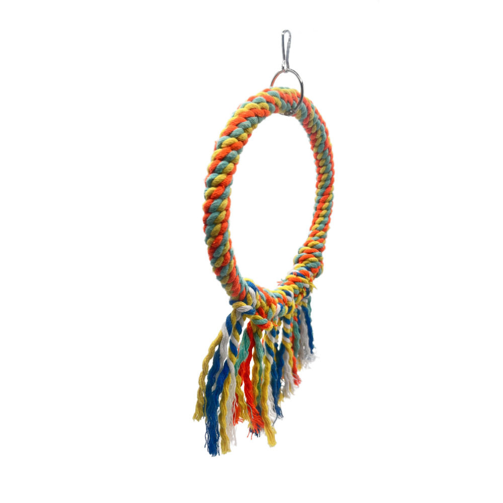 淘宝鹦鹉玩具鸟秋千彩色棉绳鸟吊环圆环秋千鸟类啃咬栖息玩具鸟笼配件