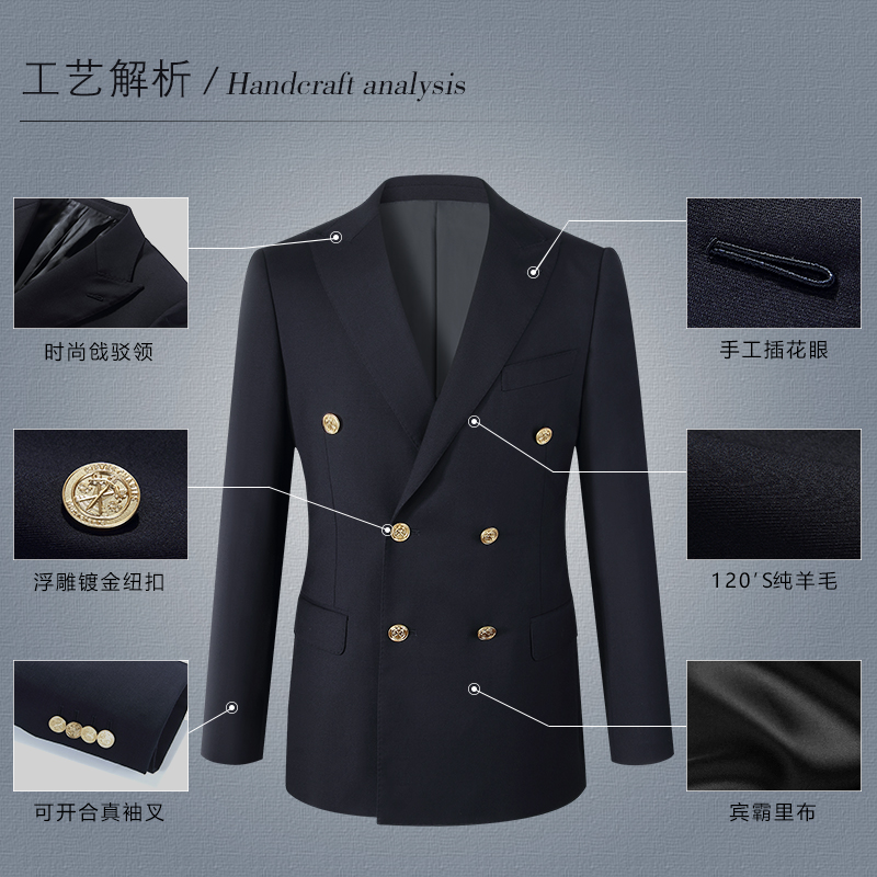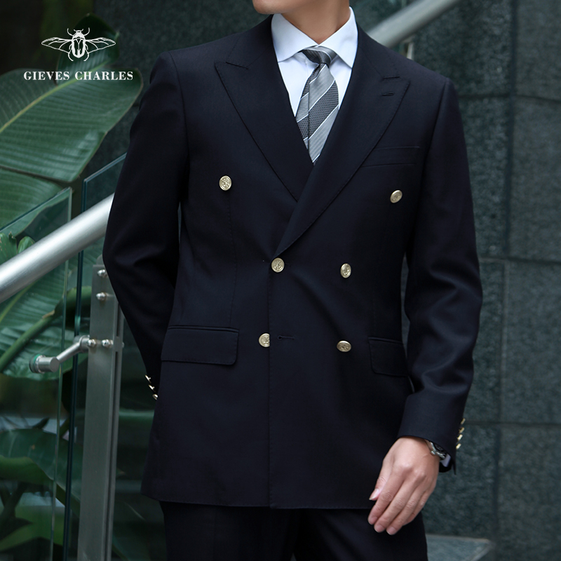 天猫意大利进口Tallia面料男士双排金扣商务休闲西服上衣羊毛西装外套