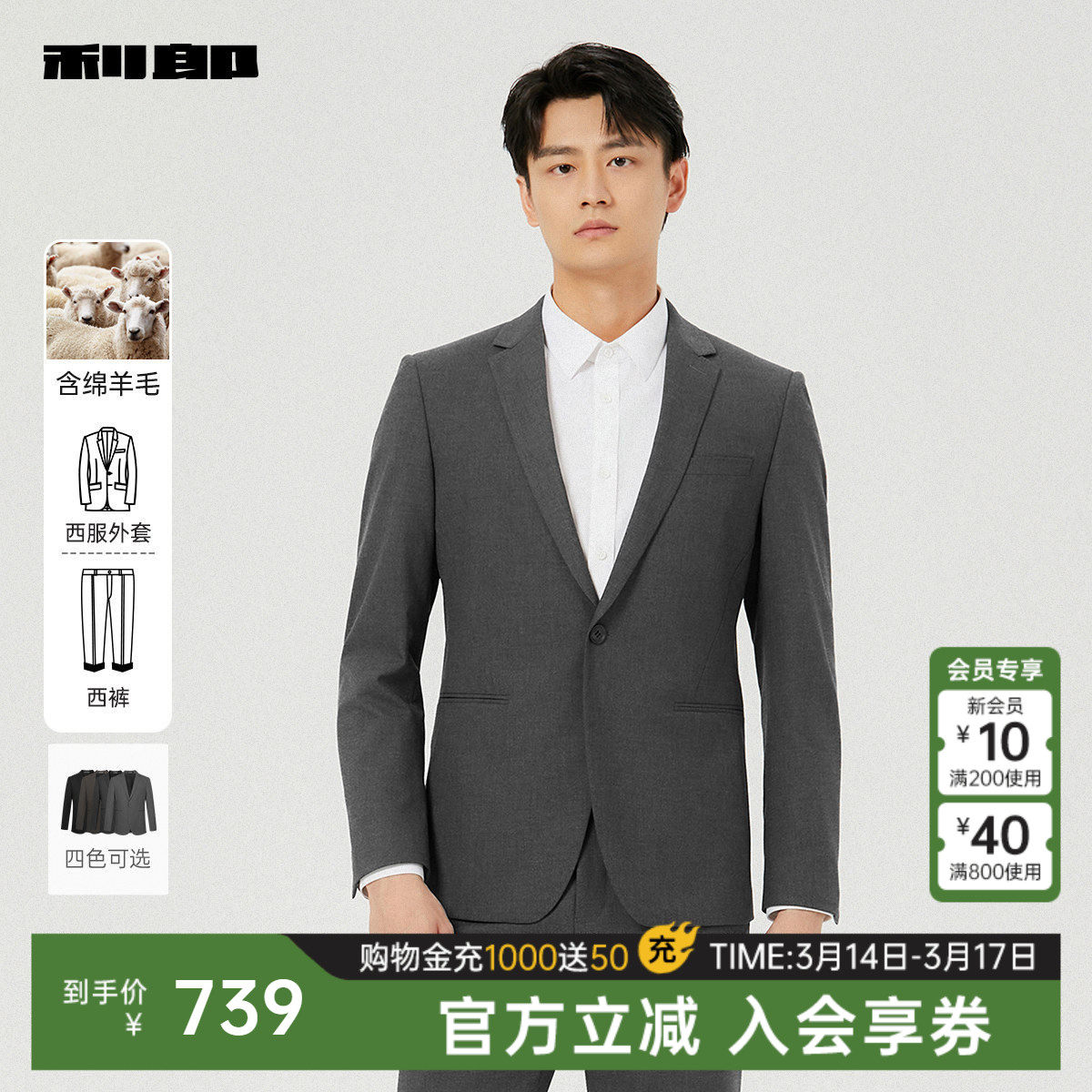 天猫【含绵羊毛】利郎官方西服套装男士春秋款新款男装纯色结婚外套