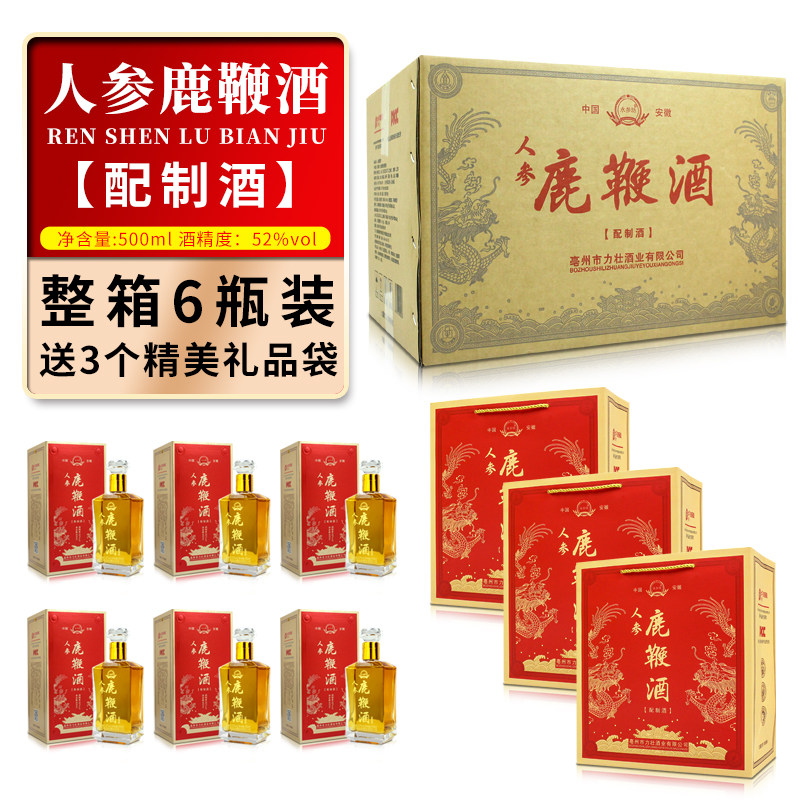 淘宝正品人参鹿鞭酒500ml*6瓶礼盒装 安徽长白山52度枸杞子药酒养生酒
