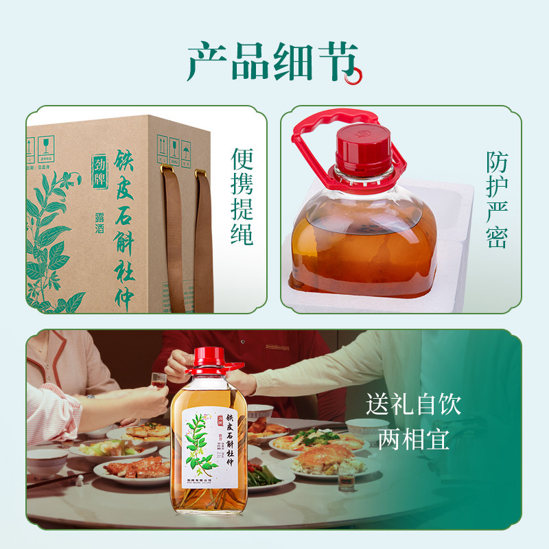 劲牌35度铁皮石斛杜仲酒,精选优质白酒为基酒,融入铁皮石斛、杜仲等珍贵草本精华,匠心调配而成。酒体醇厚,口感柔和,兼具传统白酒风味与养生功效,适合日常饮用或节日礼赠。2.3L大容量瓶装,搭配精美礼盒包装,彰显品质与心意。铁皮石斛滋阴润燥,杜仲强筋健骨,二者相辅相成,助力健康养生。无论是孝敬长辈、馈赠亲友,还是节庆团聚,此款养生酒都是表达关怀的优选佳品。劲牌品牌信誉保障,工艺严谨,品质安心,让每一口都饱含健康与温情。