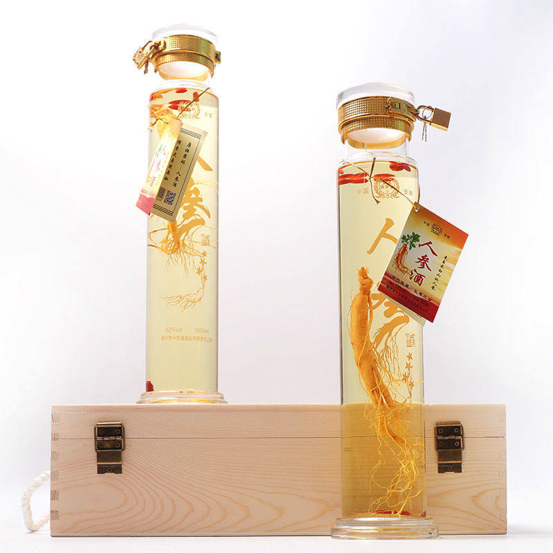 淘宝人参酒枸杞白酒1000ml*2瓶包装木质礼盒装52度送礼聚餐浸泡水果酒