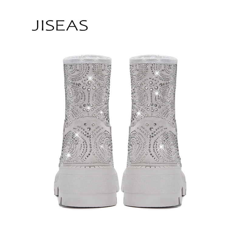 JISEAS璀璨星空水钻雪地靴女2025新款,专为严寒冬日打造,融合时尚与实用。采用优质真皮材质,内里加厚保暖绒毛,有效抵御东北极寒天气,双脚持久温暖舒适。鞋面点缀璀璨水钻,呈现梦幻星空效果,闪耀吸睛,轻松成为冬日街头焦点。防滑耐磨大底设计,抓地力强,冰雪路面行走更安全。加高靴筒提供额外保暖与支撑,贴合脚踝曲线,舒适不磨脚。轻盈缓震中底,久穿不累,兼顾美观与功能性。无论是日常通勤还是户外出行,JISEAS雪地靴都是冬季不可或缺的时尚单品,温暖与闪耀并存。