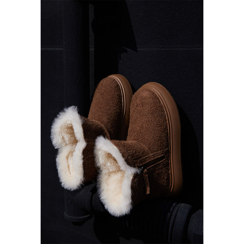 LeMurmure冬季新款时尚牛反绒雪地靴,专为寒冷季节打造,融合保暖与潮流设计。采用优质牛反绒材质,质感细腻,防水耐磨,内里加绒加厚,锁温效果出众,有效抵御严寒。高帮设计贴合脚踝,防风保暖的同时提升整体造型感。防滑橡胶大底抓地力强,适应冰雪路面,行走更安全。简约百搭的配色与流畅线条,轻松搭配羽绒服、大衣等冬装,展现优雅冬日风采。无论是日常通勤还是户外出行,LeMurmure雪地靴都是温暖与时尚兼具的理想之选,让女性在寒冬中步履轻盈,自信绽放。