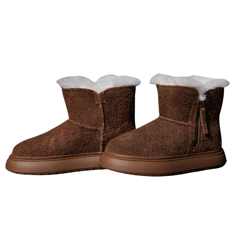 2026春季平底短靴女真皮保暖羊毛一体雪地靴粗跟厚底马丁靴女靴子