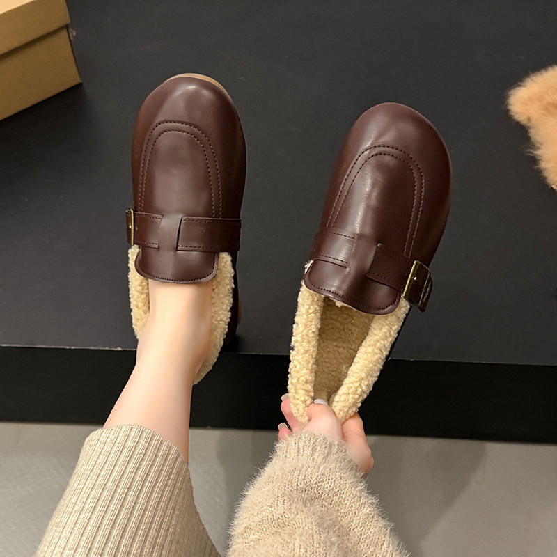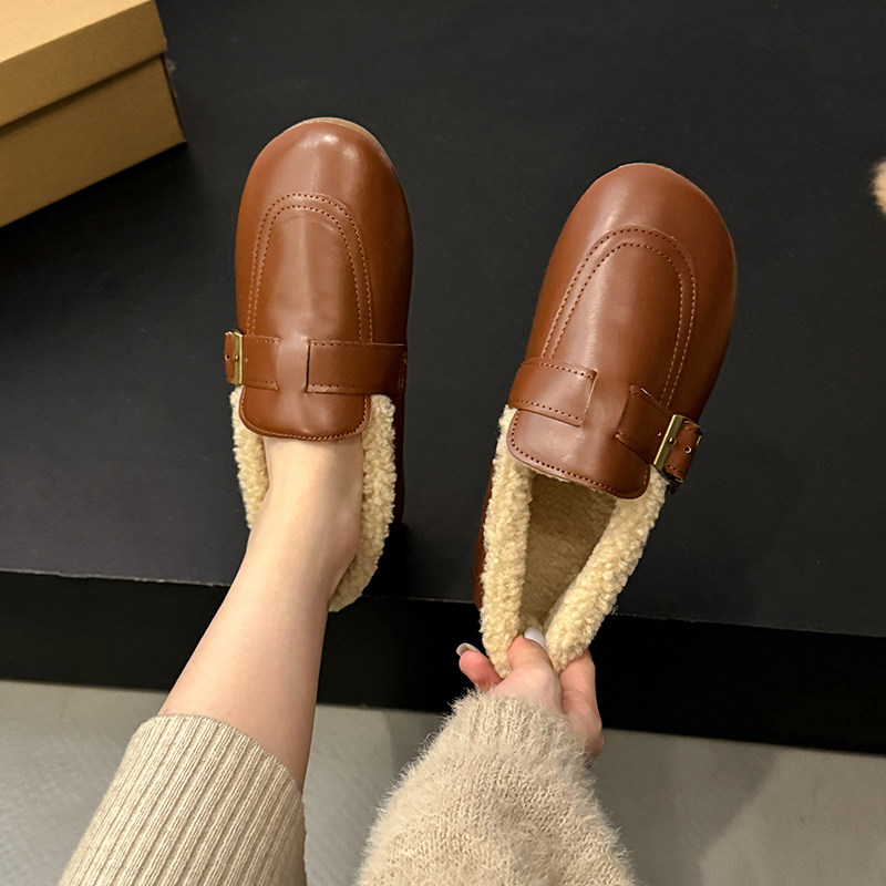 EOIU 10.16 出口单 澳洲羊毛卷毛包头平底拖鞋外穿毛毛女鞋雪地靴
