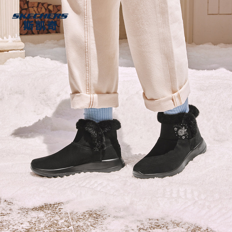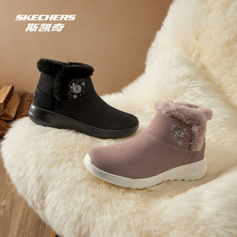 淘宝Skechers斯凯奇时尚雪地靴女冬季加绒保暖一脚蹬棉鞋印花百搭短靴