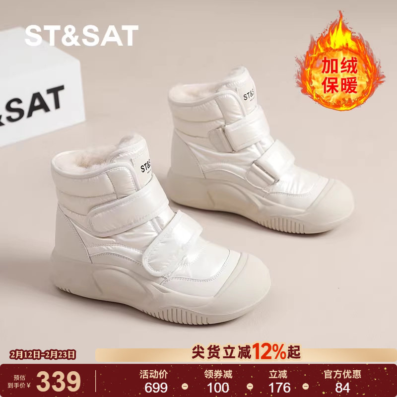 天猫星期六雪地靴女冬季新款厚底防滑小白短靴女士加厚保暖东北大棉鞋