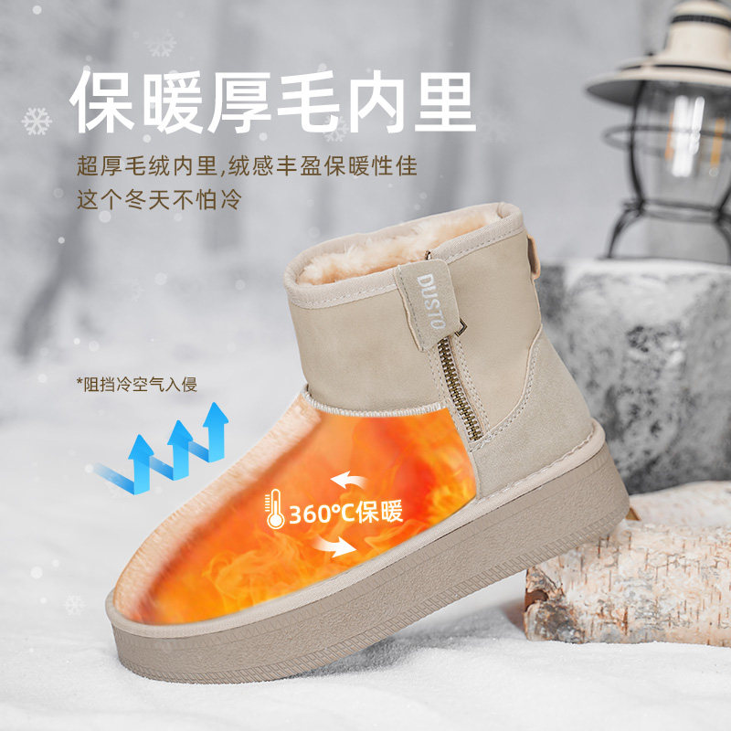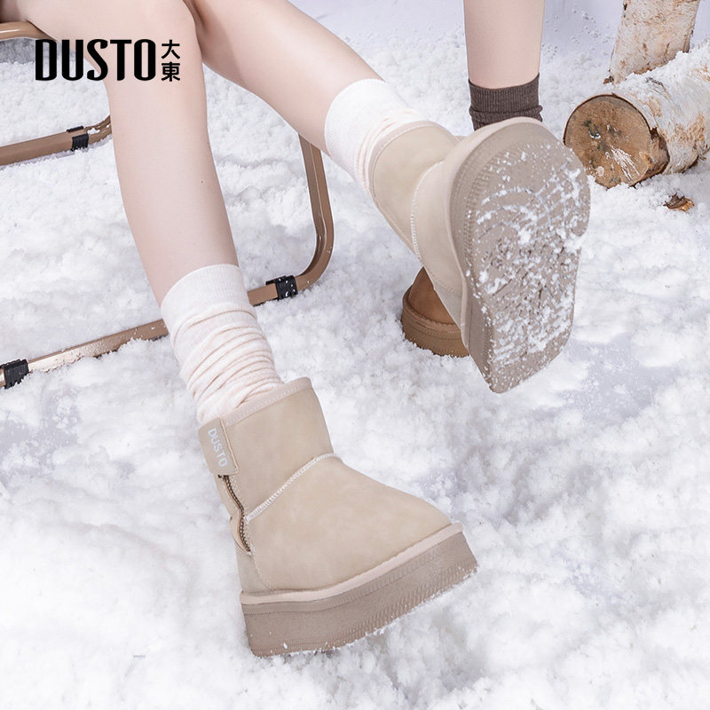 天猫大东雪地靴女鞋2025冬季新款时尚休闲中跟平底侧拉链圆头D1219