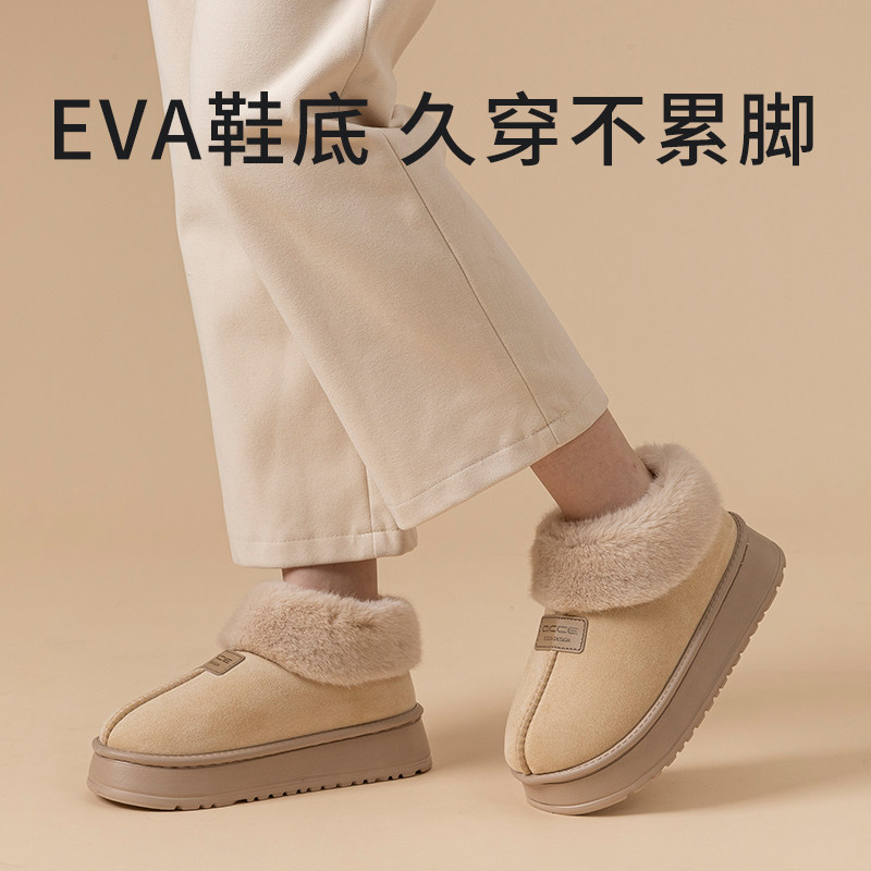 天骆驼女鞋2025冬季新款厚底加绒保暖雪地靴毛毛鞋休闲勃肯鞋棉鞋女