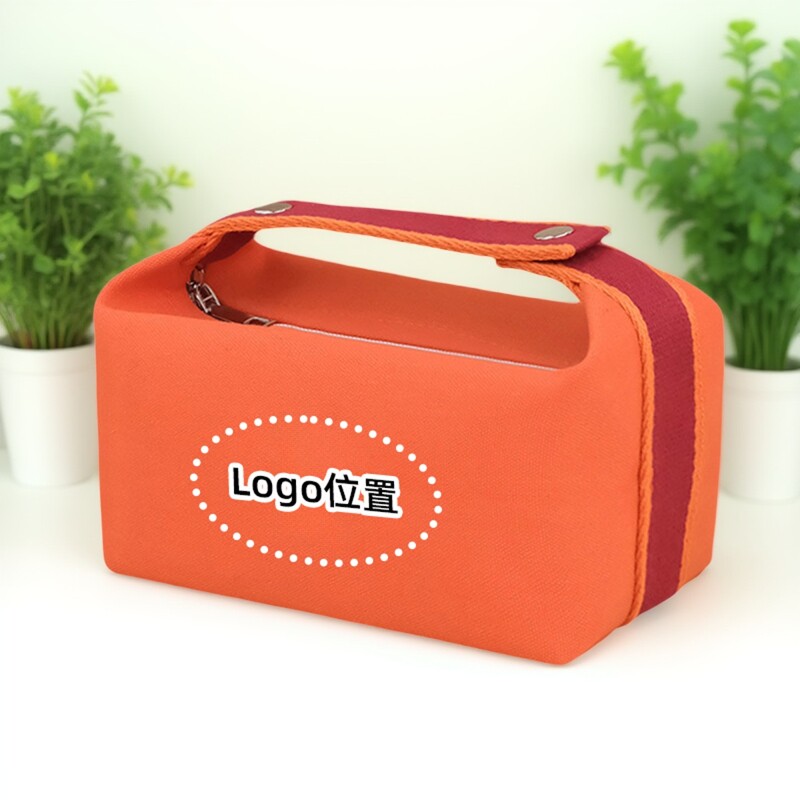 这款简约素雅手提帆布化妆包,采用优质环保帆布材质,质感细腻,耐用防水。设计简洁大方,素雅色调百搭各类风格,内置分层收纳,轻松分类存放化妆品、洗漱用品或小物件,满足出行、居家多场景需求。便携提手设计,携带方便,适合旅行、出差或日常使用。支持定制logo及印字服务,可印制商标、品牌名称或个性标语,提升品牌形象,是企业礼品、促销赠品或自用收纳的理想选择。轻便实用兼具美观与功能性,是追求品质生活人士的贴心之选。