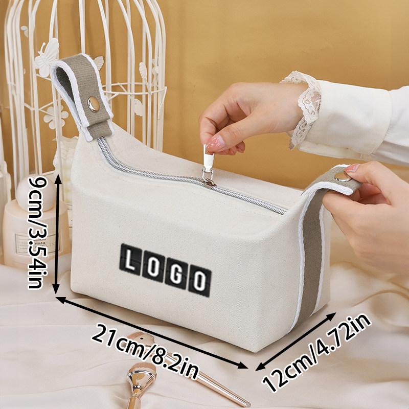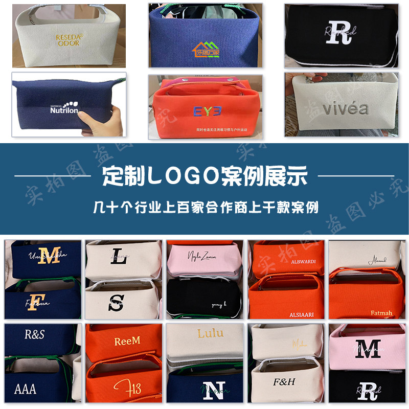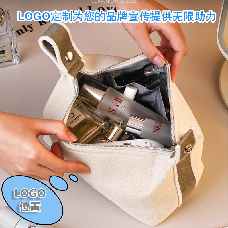 淘宝简约素雅手提帆布化妆包便携多功能洗漱收纳包定制logo可印字商标