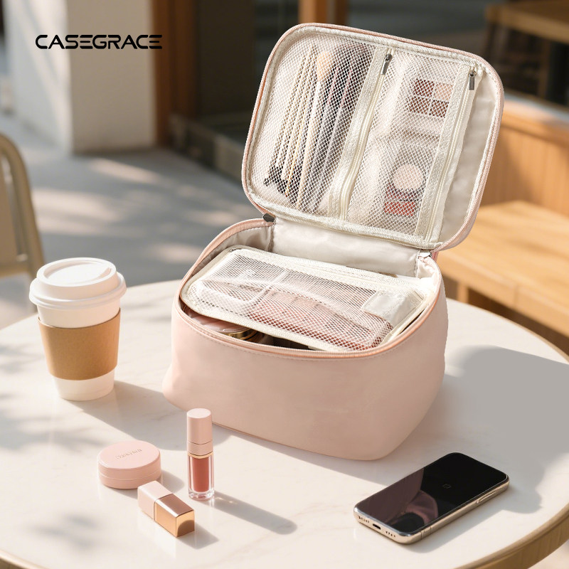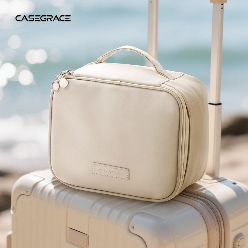 卡瑟格2025新款女士大容量便携化妆包,专为现代女性旅行与日常收纳设计。采用高品质防水面料,轻盈耐用,内里分区合理,设有弹性固定带、透明网袋及分层收纳格,轻松容纳化妆品、化妆刷、洗漱用品等,保持整洁有序。加厚防震设计,有效保护易碎瓶罐与精致刷具。拉链顺滑,开合顺畅,外观简约时尚,多色可选,兼顾实用与美感。无论是短途出行还是长途旅行,都能轻松装入 suitcase,是精致生活的贴心伴侣。卡瑟格化妆包,让美丽随行,收纳无忧。