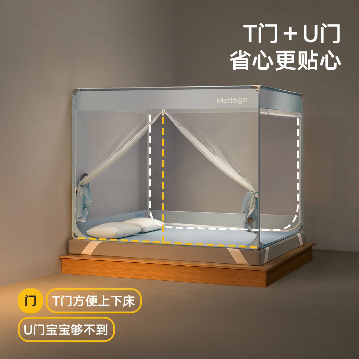 天猫美朵嘉防摔蚊帐2026新款婴儿防掉加宽绑带四面幔头带收纳袋一体式
