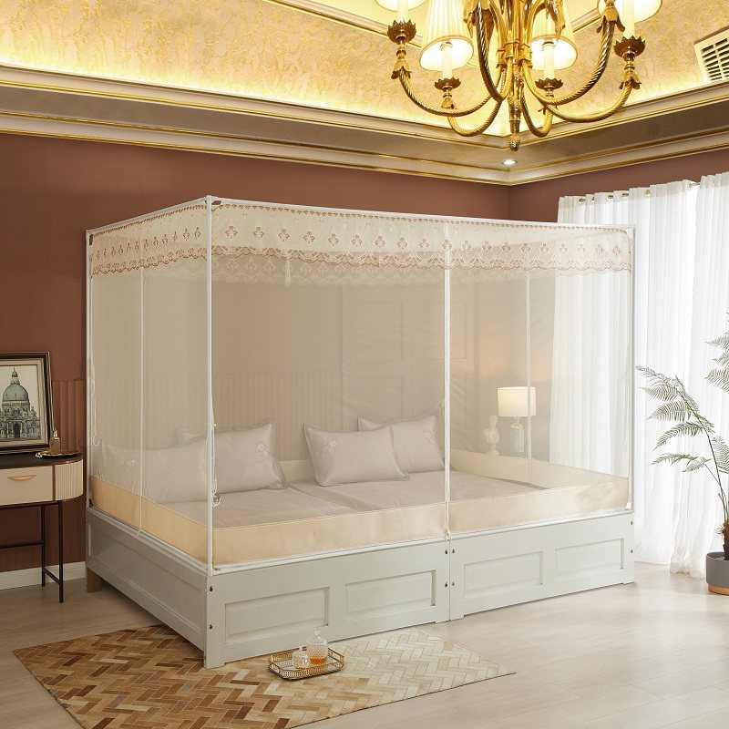 蚊帐家用2023新款三开门防尘顶儿童防摔方顶1.5m蒙古包1.8米床