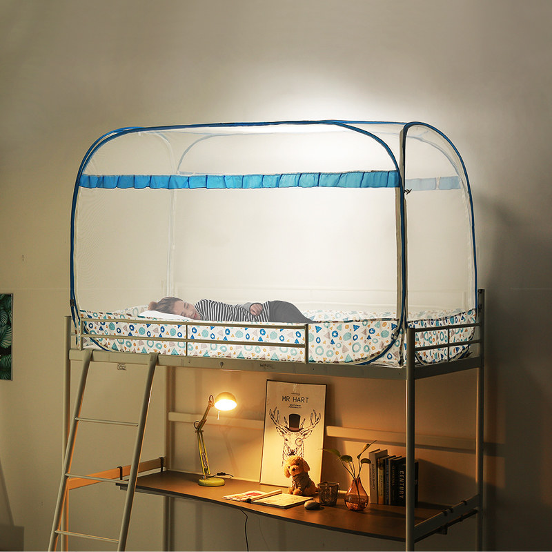 这款学生宿舍蚊帐采用蒙古包式设计,专为1米或1.2米宽的上下铺、儿童床及子母床量身打造,有效防蚊的同时兼具防摔功能,保障孩子睡眠安全。无需繁琐安装,开包即用,支架稳固结实,支撑力强,不易塌陷。帐纱细密透气,360°全包围设计,杜绝蚊虫侵扰。顶部设有拉链开口,方便进出,底部加高防磨边,延长使用寿命。轻巧便携,收纳体积小,适合宿舍、家庭、旅行等多种场景使用。简约美观,实用性强,是学生和家长的理想选择,让睡眠更安心、更舒适。