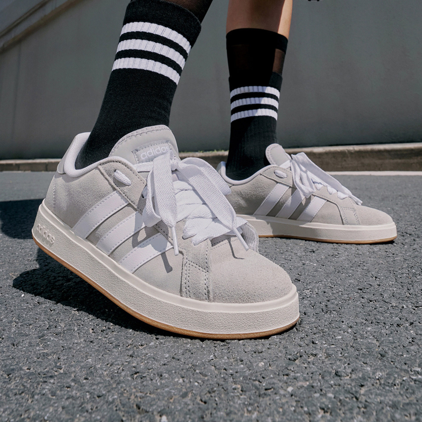 「面包鞋」GRANDCOURT BASE 00s 是 adidas 推出的一款复古休闲低帮板鞋,男女同款设计,兼具经典与潮流感。鞋身采用优质皮革材质,搭配标志性三条纹装饰,简约中彰显品牌辨识度。厚底设计灵感源自千禧年复古风格,形似“面包”,因此得名“面包鞋”,不仅视觉饱满,更提供舒适脚感。中底搭载轻量缓震科技,日常行走轻松自在。百搭造型适合搭配牛仔裤、运动裤或裙装,轻松驾驭街头、通勤等多种场景。GRANDCOURT BASE 00s 将复古美学与现代舒适完美融合,是追求个性与实用性的时尚之选。