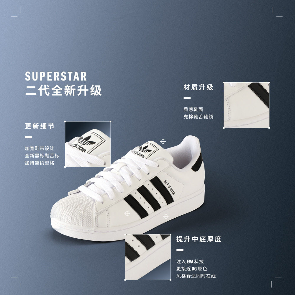 天猫明星同款SUPERSTAR II复古贝壳头板鞋男女adidas阿迪达斯三叶草