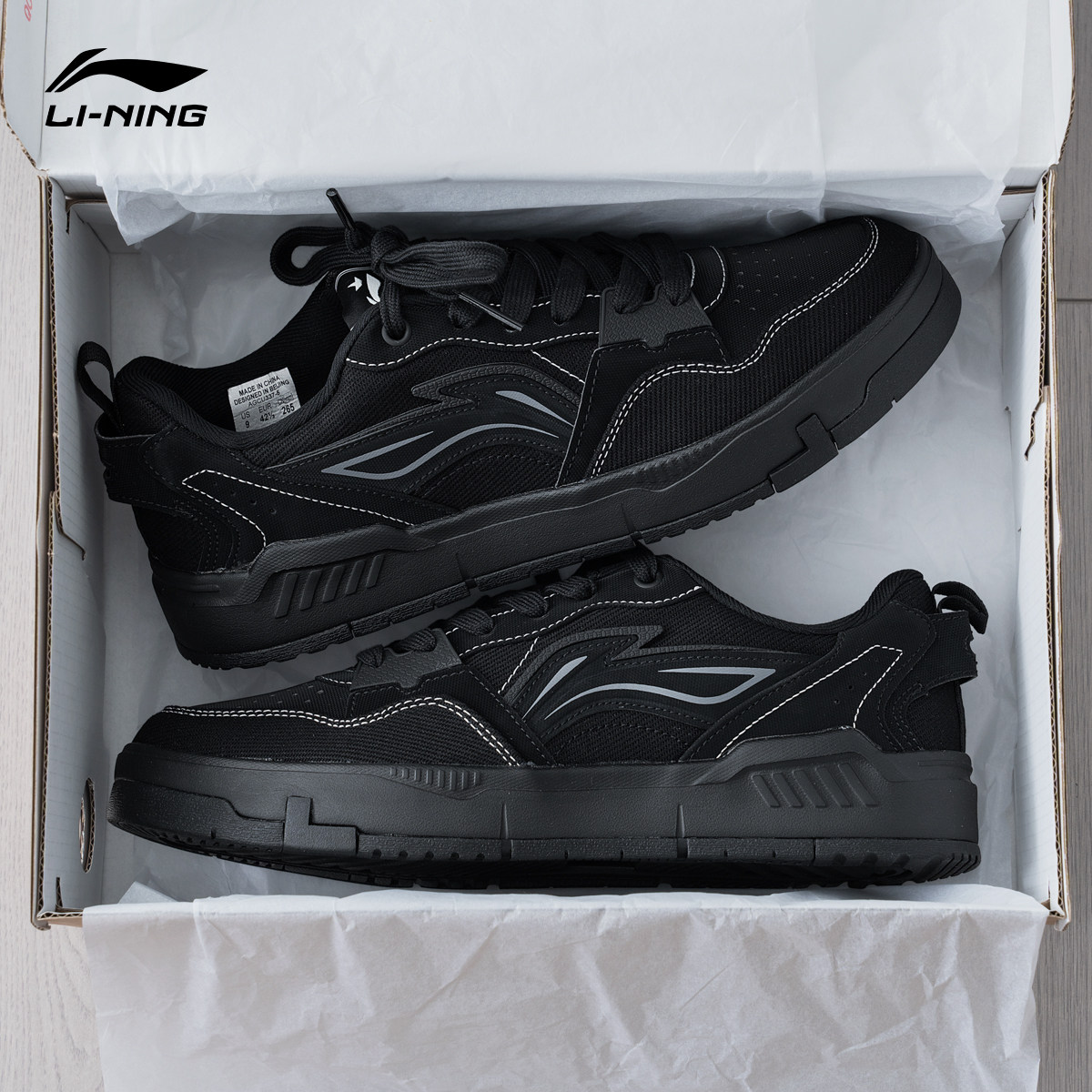 淘宝李宁元初板鞋男鞋2026春季新款青少年黑色休闲百搭厚底低帮运动鞋