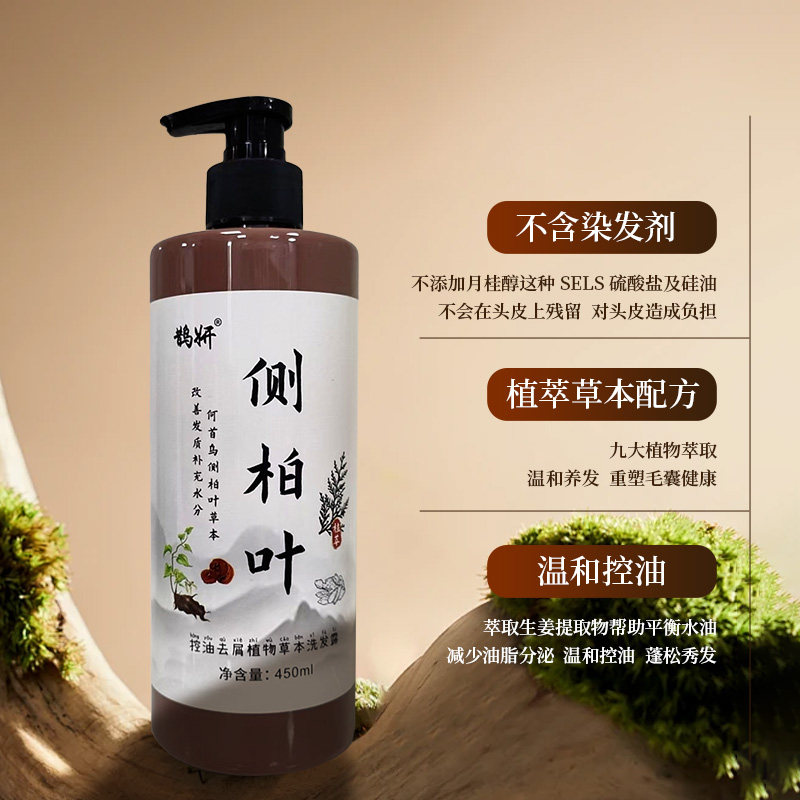 淘工厂直销侧柏叶何首乌洗发水去头屑止痒控油蓬松无硅油植物洗发液