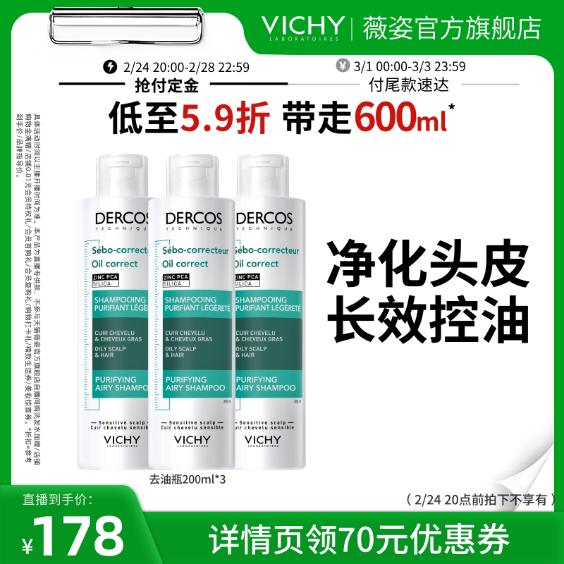 天猫【直播推荐】薇姿去屑绿标水润版去油瓶爆蓬红标粉标舒缓洗发水O